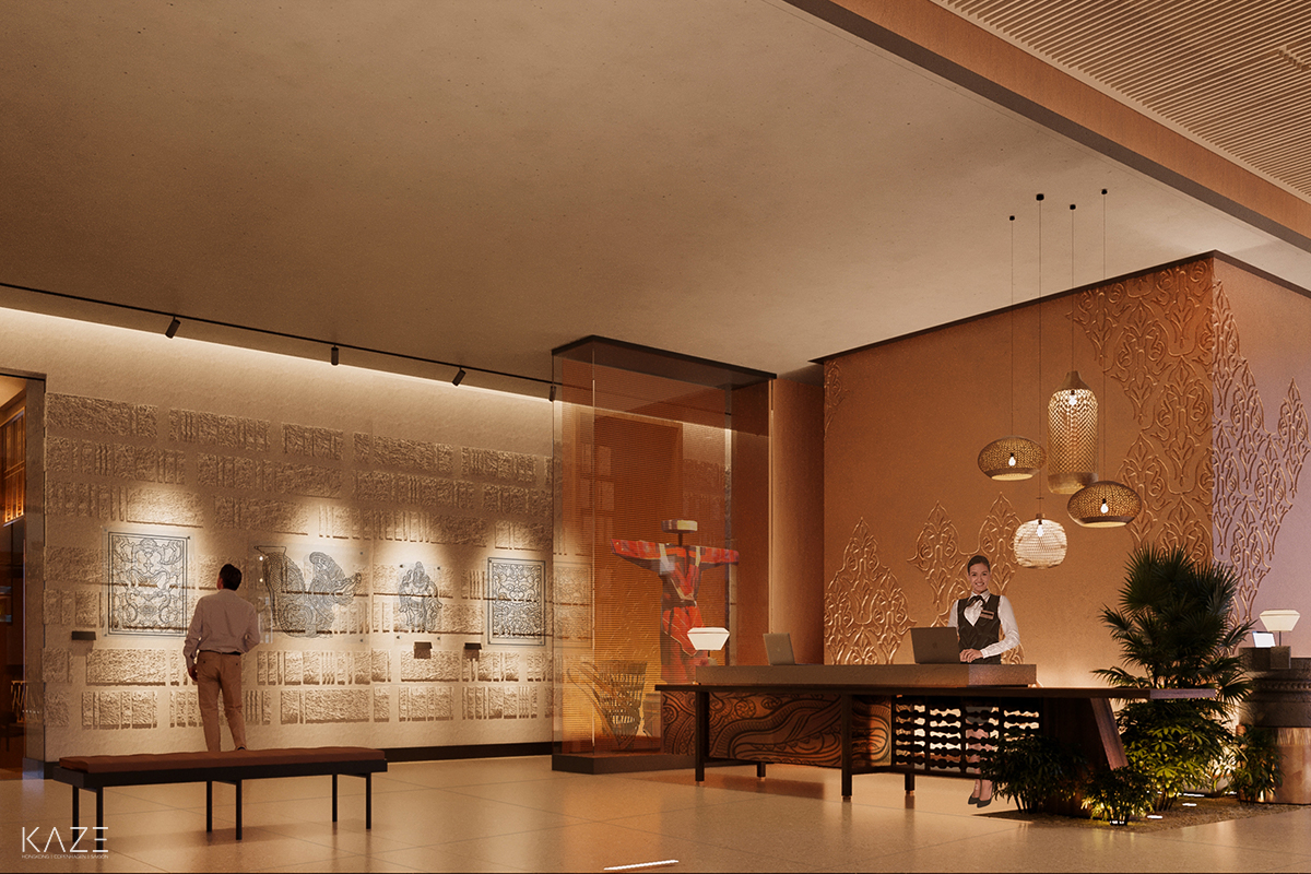 The Art Gallery is a place that preserves the cultural imprints of Phu Yen. The hotel lobby embodies the spirit of a miniature museum, safeguarding and reviving the Champa culture through its exhibition spaces; paintings, graphics; through materials and colors selected for interior design. The ancient atmosphere blends into the modern architectural space, where the soft patterns characteristic of traditional culture are delicately combined with the strong, minimalist lines of contemporary design - creating a memorable destination in Phu Yen.