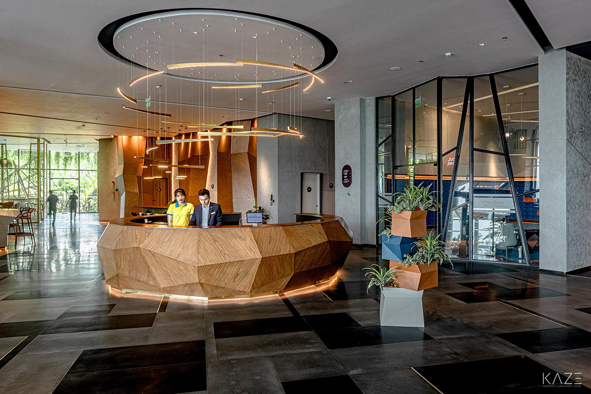 KAZE Interior Design Studio proposed a young and dynamic design for this tourist hotel and apartment building in Halong Bay.