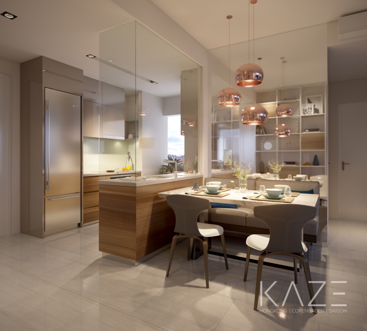 KAZE Interior Design Studio designed a show gallery and luxury apartment show units for Frasers Q2 apartment, focusing on marketing purposes. Luxury-inspired design is done with consideration to a sensible layout, ensuring the arts go along with convenience and functionality.