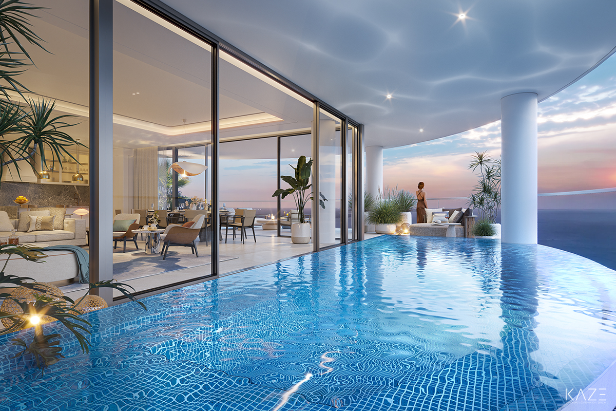 A luxurious penthouse offering unparalleled sea views is located in Ho Tram. The development draws inspiration from a coastal theme and includes a private plunge pool, sundeck, and terrace as part of its impressive offerings.This recent project provides a blueprint for combining innovation, craftsmanship, and luxury at the highest levels. Let’s explore the design choices that define this extraordinary space.