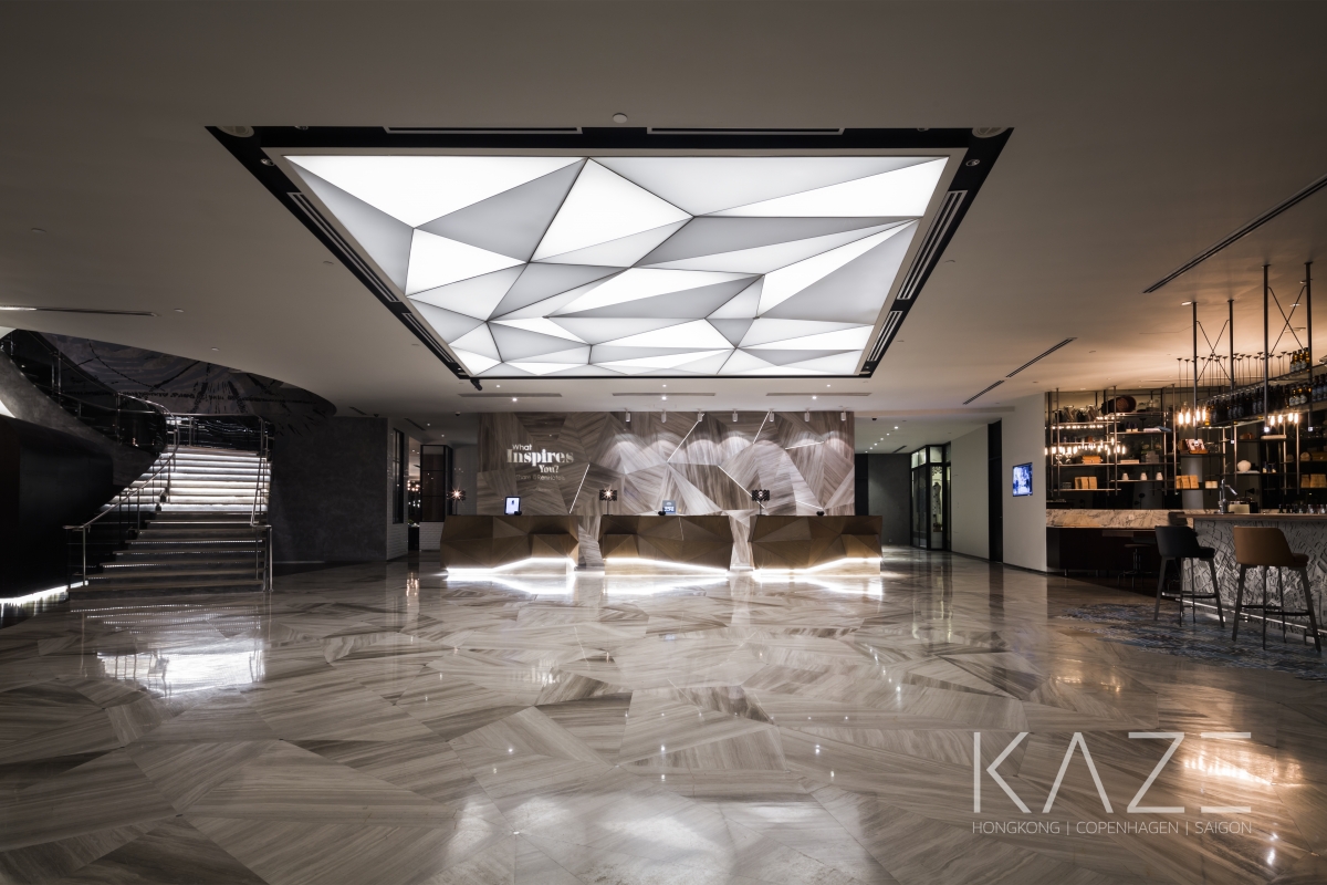 The Marriott team and KAZE Interior Design Studio worked closely to reflect a slice of the city in which we live, eat and sleep. The strong geometric forms created from different materials mirror the dynamics of the city. Contrasting materials are used for the floors, walls and ceilings. The floor appears to be shedding its skin as the walls reach out to you. In the entrance lobby each step you take is mirrored by the reflective surface of the ceiling. This is a story of travellers with "wanderlust" who want to get lost in the big city and navigate through the old and the new.