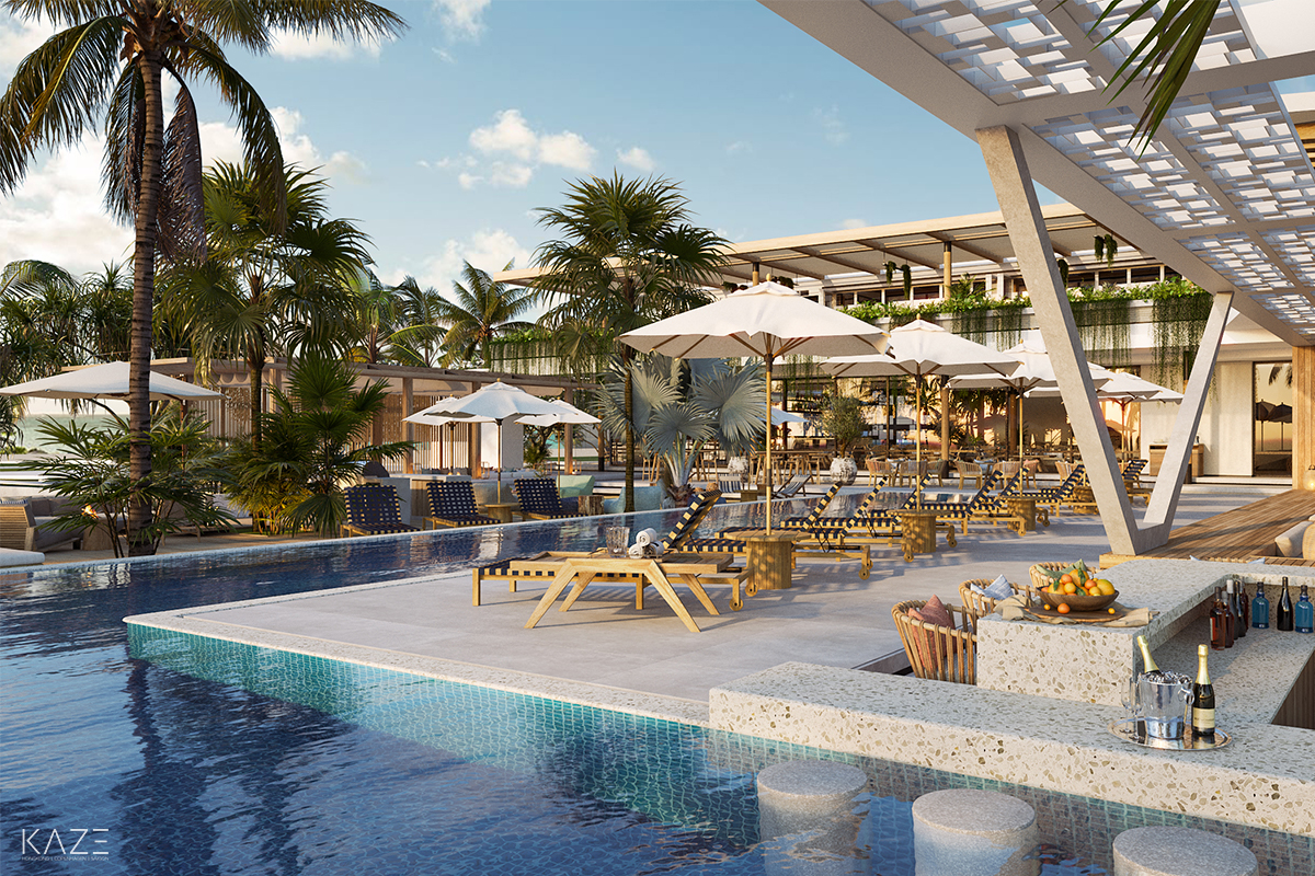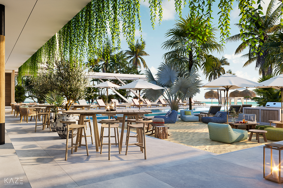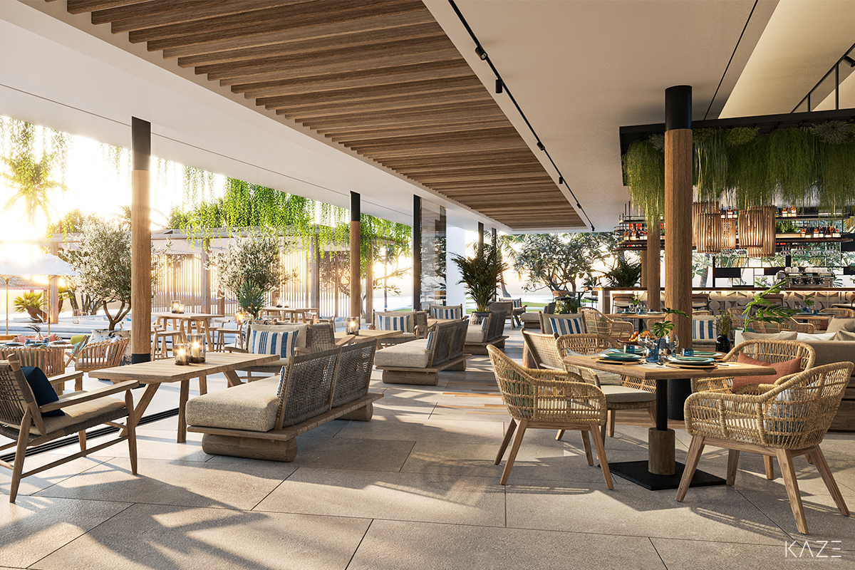 Nestled within the nature of Ha Long, this concept exhales rustic and lively at the same time. The interior design blends in the local culture through every single detail without forgetting the ultimate comfort.The interior mainly features natural materiality, such as wood, raw stone, summer palette and fabric chairs in colorful colors. Moreover, the whole indoor and outdoor space are surrounded by many palm trees, tropical plant creating a vibrant atmosphere. Not only can guests enjoy the beautiful sea view, but they can also relax in the wonderful space with many beautiful spots to take pictures.