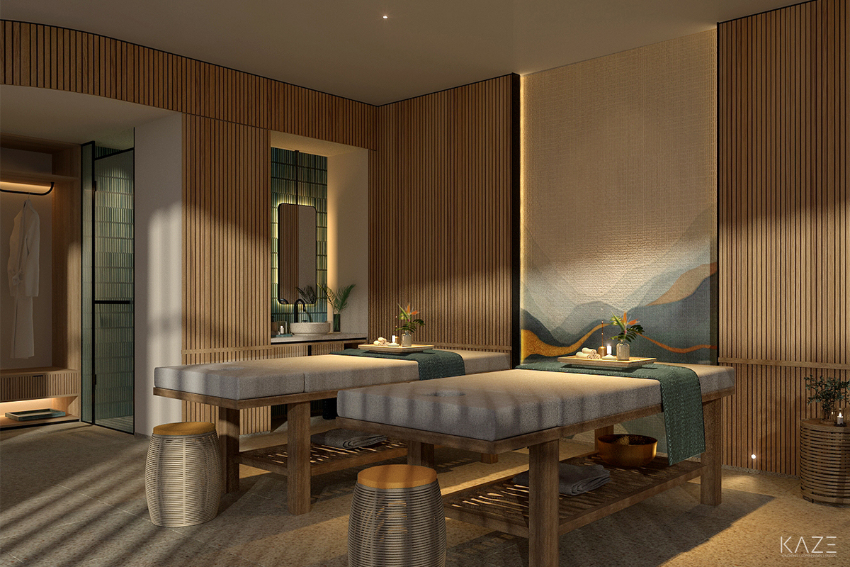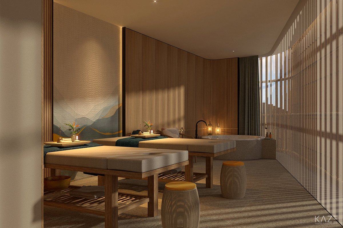 A luxury spa is an indispensable part of any high-end hotel. The Sailing Club Ha Long's spa is a luxurious haven designed to engage all senses. It combines wood, natural stone, and rattan with the unique ambiance of Ha Long Bay's rocky terrain. The spa's atmosphere is one of calm and relaxation, achieved through strategically dimmed lighting that highlights only the most important features, ensuring a serene wellness experience.