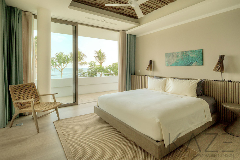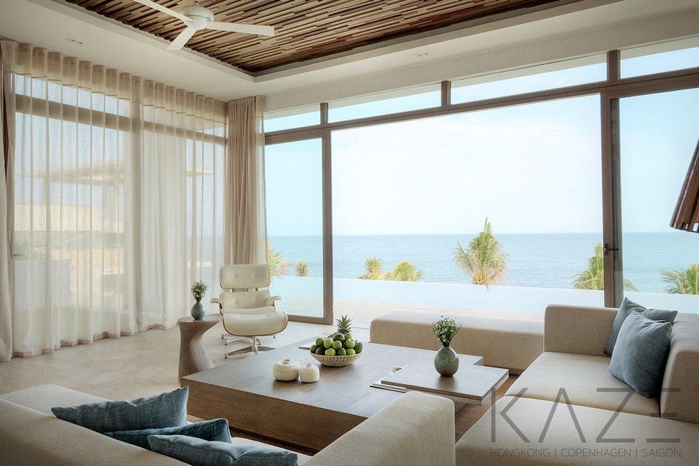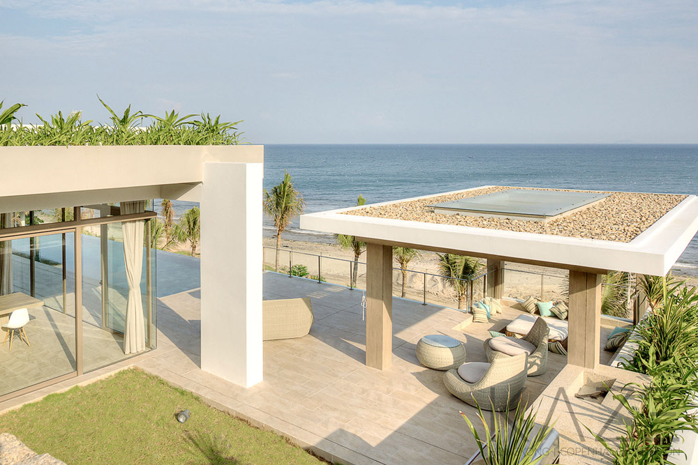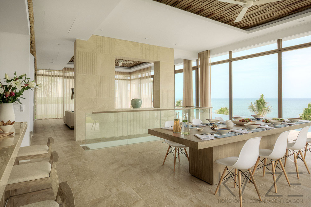 This villa was designed by GFAB Architects and the interior design created by KAZE. It has a contemporary lines combined with a seaside feel. Rustic style furniture is combined with a modern fit out.